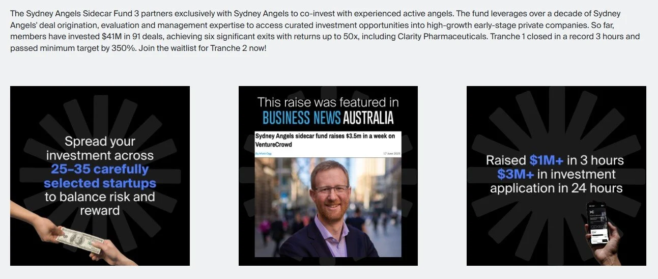May 8, 2025 Siobhan Saunders Sydney Angels Sidecar Fund 3 Launch! May 8, 2025 Siobhan Saunders Thank you Adrian and Philip, two of our elected Committee Members, who have been working hard for months to launch Sydney Angels Sidecar Fund 3, in partnership with VentureCrowd. Siobhan Saunders